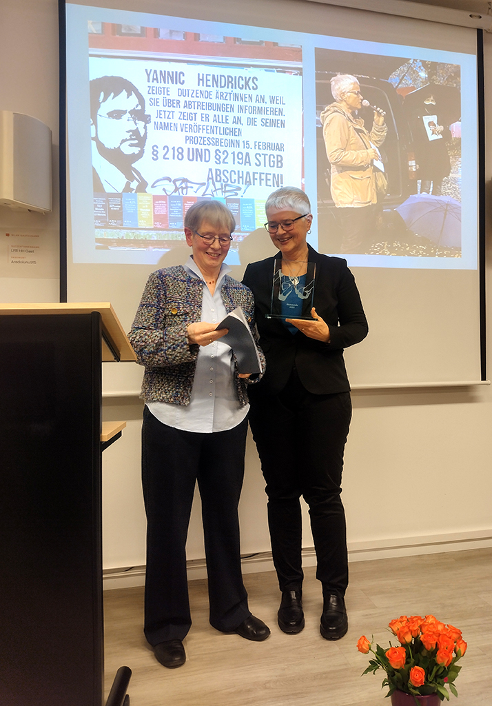 „Mit der Auszeichnung würdigt Hamburgs größte Frauenlobby ihr jahrzehntelanges, konsequentes Engagement für sexuelle und reproduktive Rechte – und insbesondere ihren unermüdlichen Einsatz für die Abschaffung des §218 StGB“